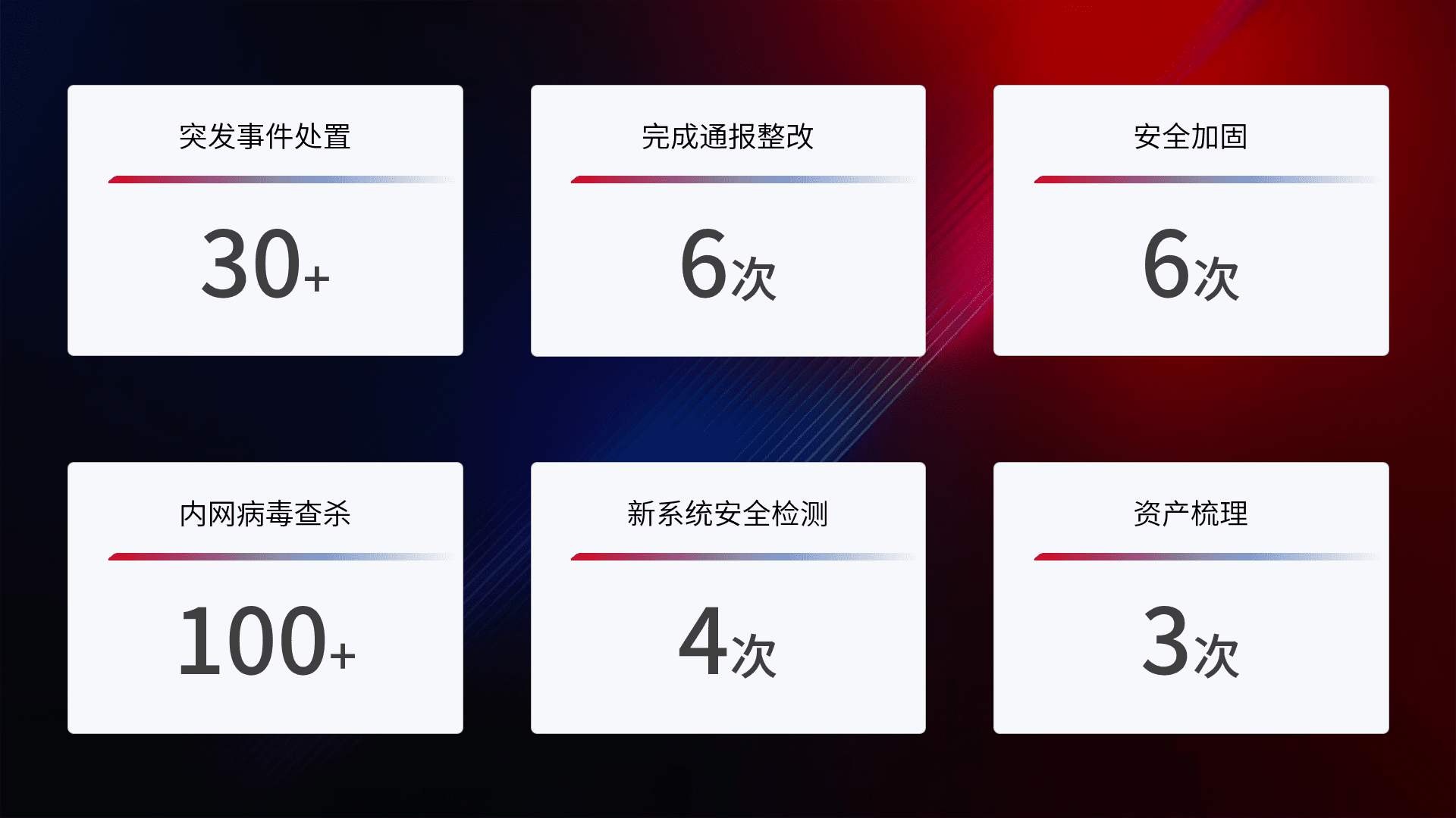 安全水平提升与事件响应:派驻经验丰富的安全工程师,,,,提升医院网络安全防护的整体水平;建立突发网络安全事件的处置流程,,提高响应速度和处置能力。。